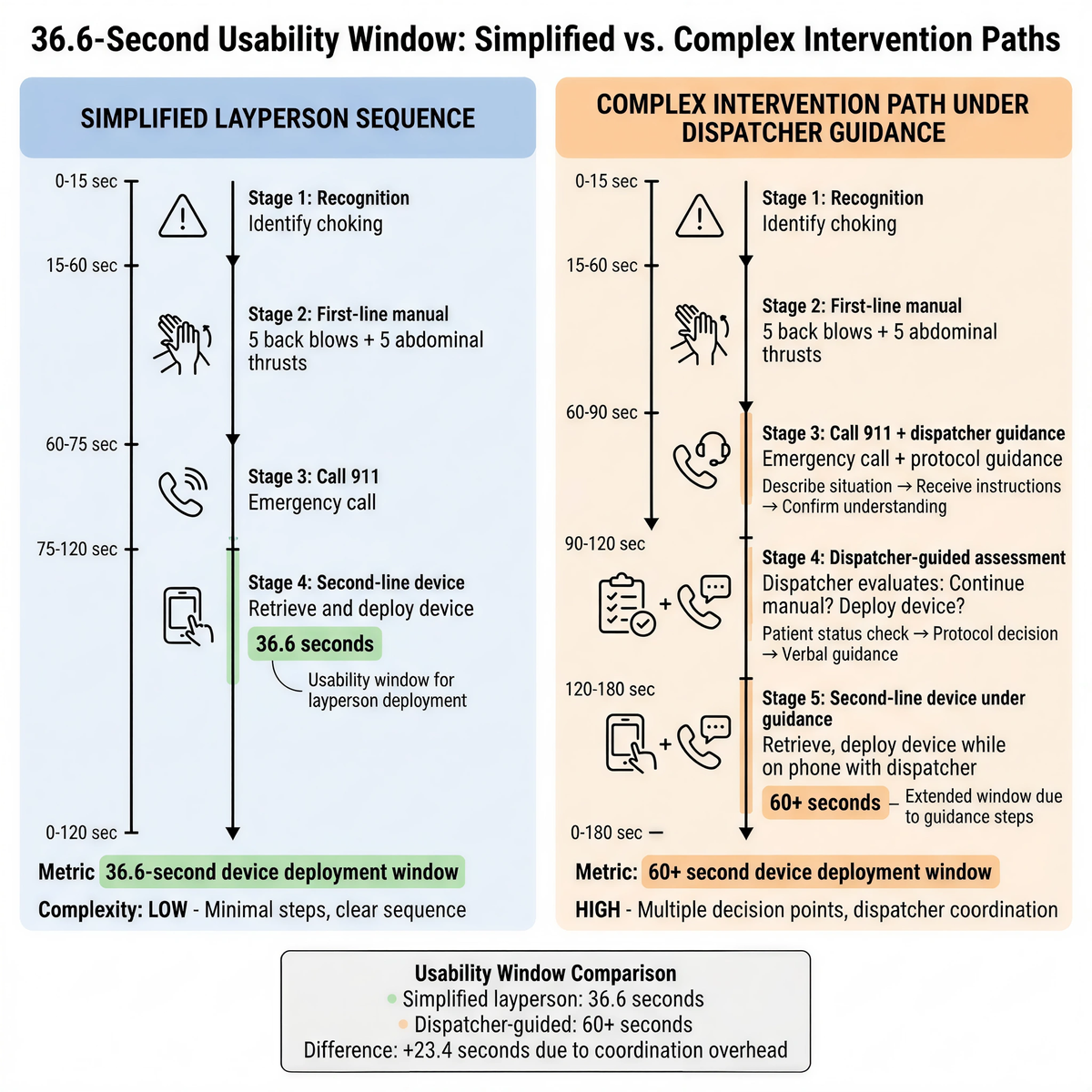 while a more complex catheter-based approach averaged about 50.4 seconds. A 14-second difference does not sound dramatic on paper. In an airway emergency, it sits inside the exact interval when the caller is trying to follow instructions under stress, often before EMS arrives.