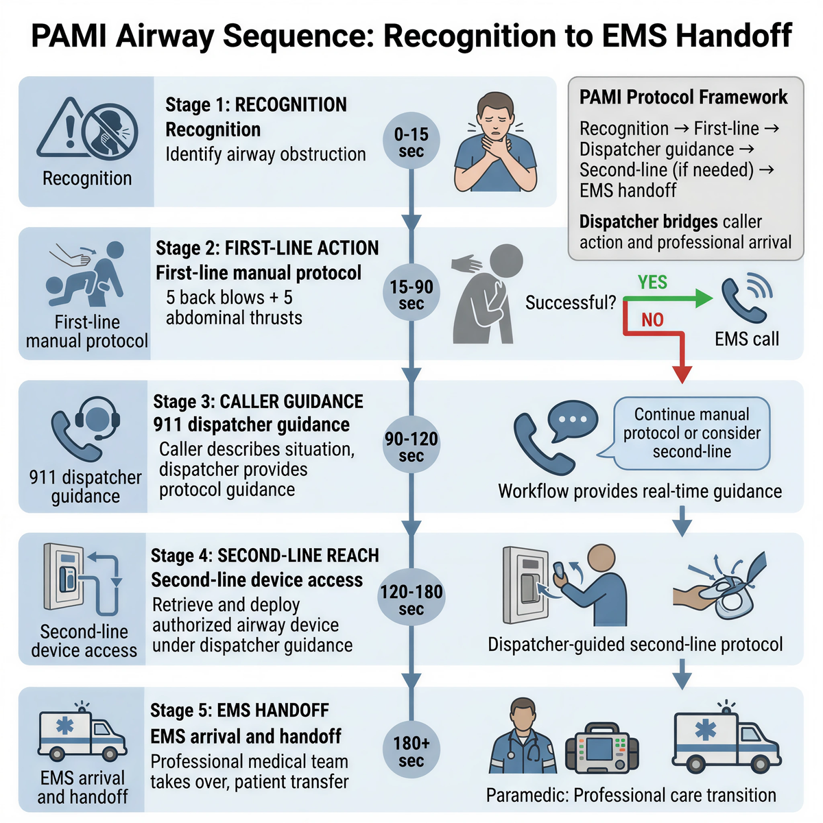 For Fitiger, the engineering significance of AB 645 is not limited to dispatcher scripts. The bill highlights a broader operational question: how quickly a bystander can move from recognition to usable action when professional responders are still minutes away. In airway emergencies, that interval is shaped by instruction clarity, scene layout, available tools, and whether the caller can follow a sequence without confusion under stress.