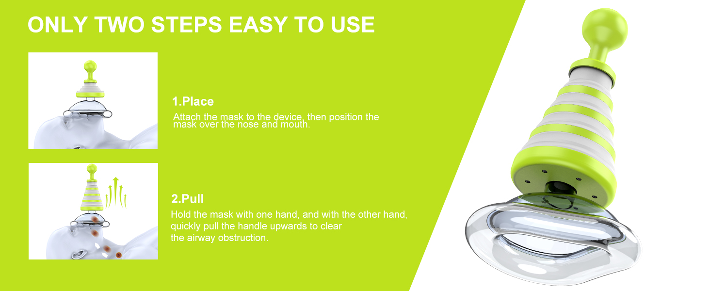 • Fast, Non-Invasive Design: Pre-compressed structure allows quick response when time matters. Two steps,About 3 seconds to complete the first airway clearing action—one step less than other methods.